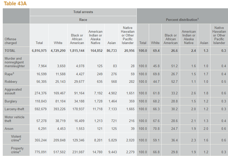 But take the same use of pattern recognition and toss in the variable of race, things become severely distorted. According to the FBI’s Crime in the United States 2019 arrest statistics (the most recent edition available), the proportion of black individuals among those arrested is substantially higher than their share of the overall U.S. population. Although black people make up about 14% of the population based on Census data, they represent 27% of all arrestees, including 30% of those arrested for property crimes and 36% of those arrested for violent crimes.